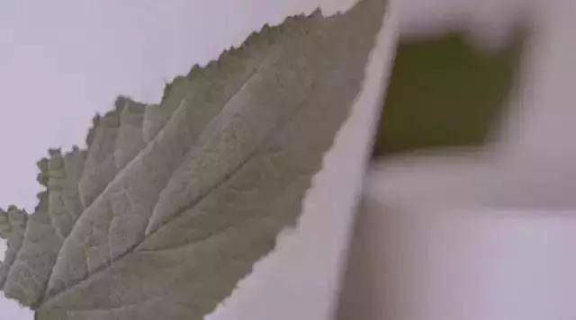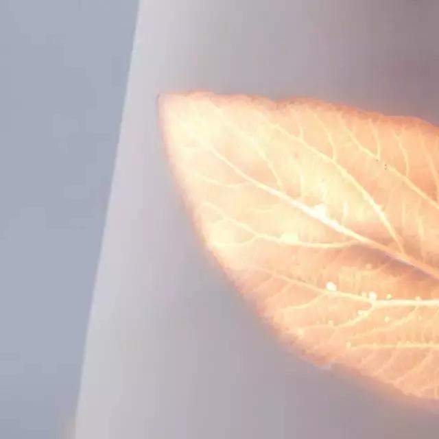 树叶依附在器物的瓷胚表面,随着叶子在高温窑炉里燃烧,最后只留下叶子的形状和脉络。