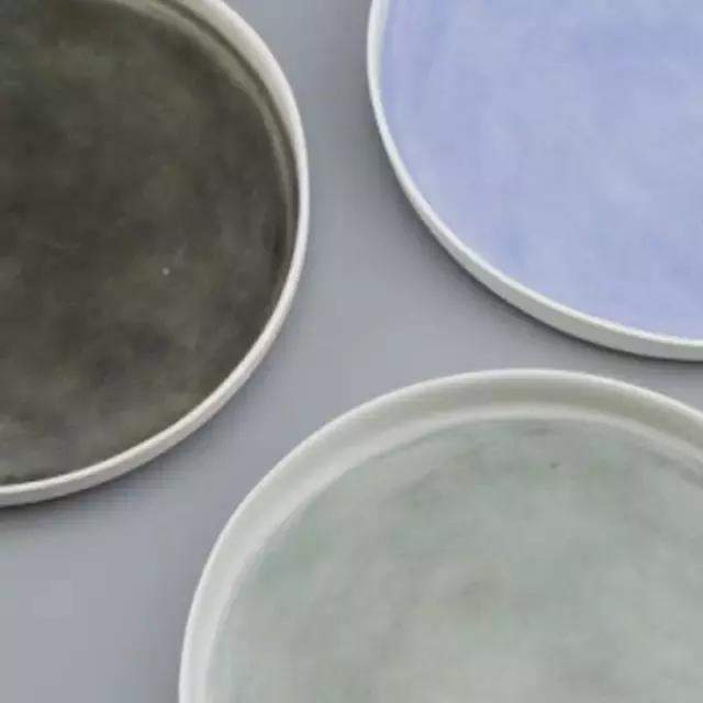 三个爱创意的女生,不断尝试新的材料。矿物质色粉通常会被用作釉料的添色剂来使用,但她们却将这些粉状的颜料直接用手涂抹在瓷胚表面,形成起雾般朦胧的效果。