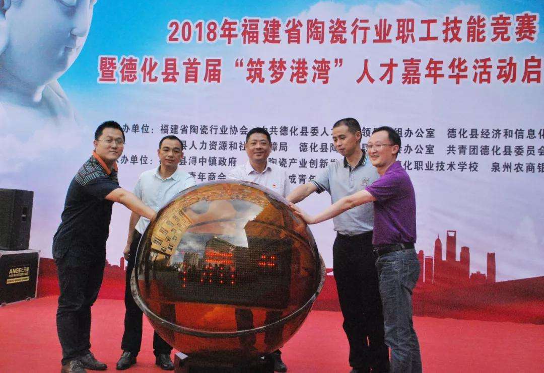 9月12日 早上,2018年福建省陶瓷行业职工技能竞赛暨德化县“筑梦港湾”人才嘉年华活动在德化安成创业园盛大启幕,县委常委、组织部长黄晓东,市委人才办、组织部、人社局、经信局、陶瓷办、团县委等单位负责人出席了启动仪式。本次活动由德化县浔中镇政府,德化陶瓷产业创新发展研究院等联合承办。