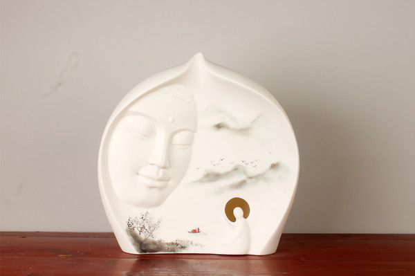 “我喜欢佛教元素,但又不想创作一些过于庄重肃穆的佛教作品。目前家居陶瓷市场相对空白,所以我在结合国内外造型元素的基础上,构思设计了一系列禅意深远的现代简约家居摆件品,让它既耐看又接地气。”苏玉湖介绍道。
