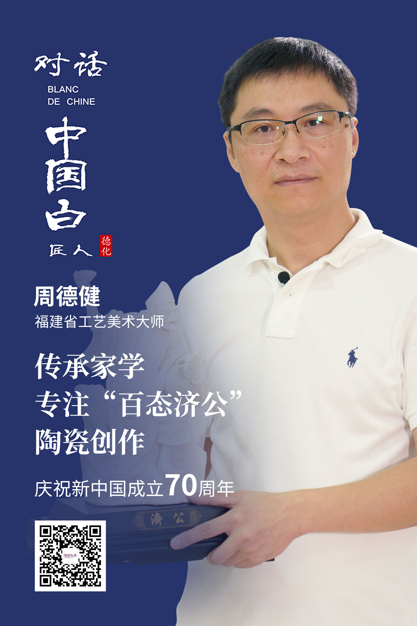 编者按:周德健应用德化传统瓷雕技艺,专注百态济公系列作品创作多年,对济公形象熟烂于心,性格也深受其影响,变得潇洒随性,因此,有人也称他为周济公。