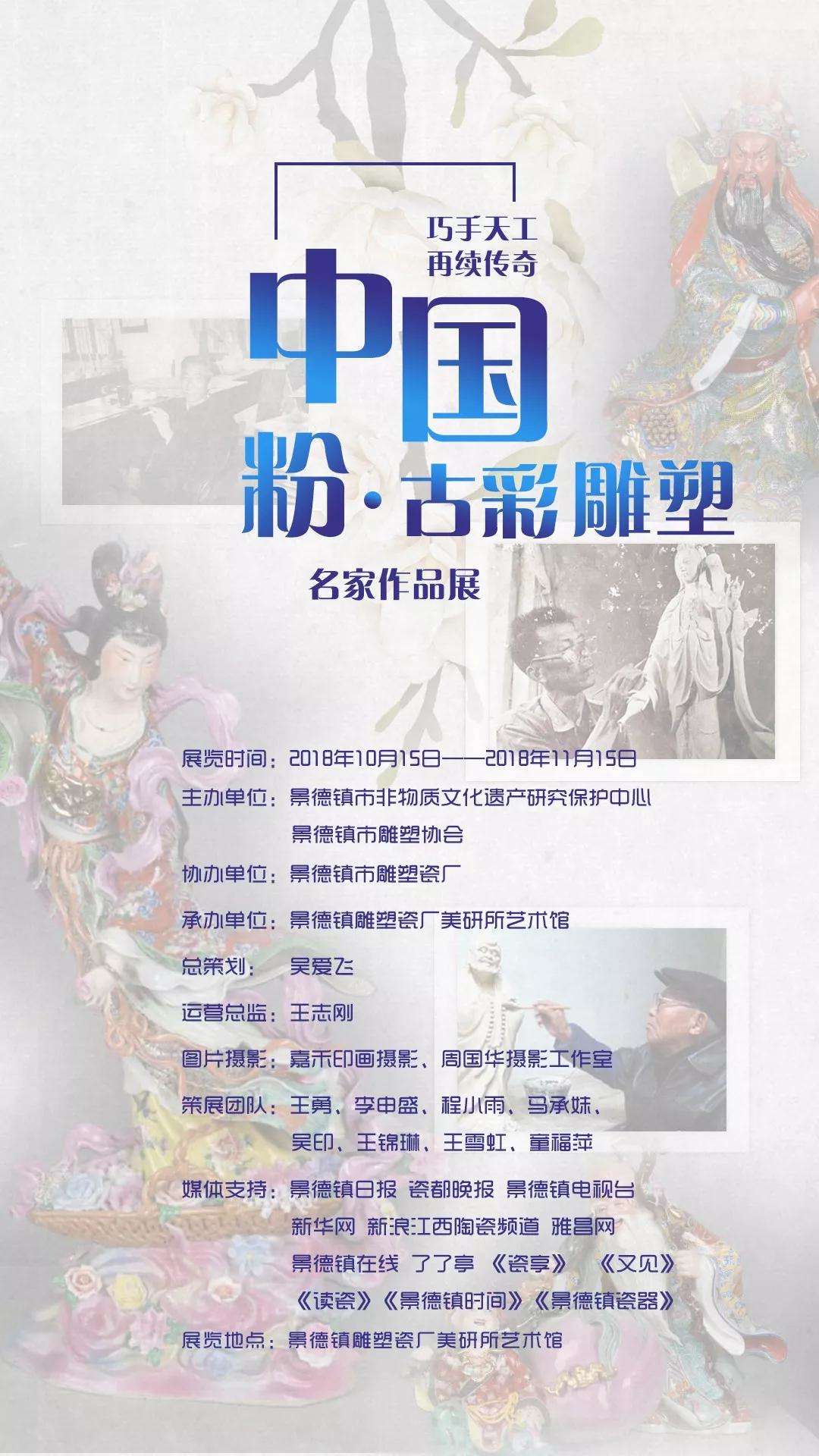 10月15日上午9时整,由景德镇市非物质文化遗产研究保护中心、景德镇市海外联谊会、景德镇市雕塑协会主办,景德镇市雕塑瓷厂协办,景德镇雕塑瓷厂美研所艺术馆承办的“巧手天工再续传奇——中国传统粉·古彩雕塑名家作品展”在江西景德镇雕塑瓷厂隆重开幕。
