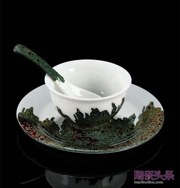 当然,除了花纸图案的创新设计之外,林春兴还跨工艺的融合了大漆、浮雕等工艺技术装饰餐具。据了解,他的浮雕餐具制备方法在2016年还荣获了国家发明专利。凹凸起伏,层次鲜明的浮雕餐具,搭配林春兴自己调配的润白釉水,在自然光下,显现得立体透亮、精致细腻,让人一见便倾心。