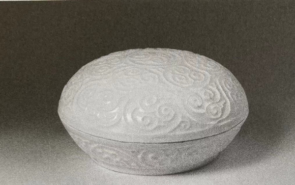 Among these earlier wares,two boxes are especially successful. The large one (late11th-early 12th century)from Wanpinglun kilns has facetted sides(fig.9).Made from fine-grained, milky-white porcelain, it is coated inside and out with a glossy white glaze. The base was left unglazed. The second box, dating from the Southern Song or Yuan dynasty,has the typical scroll decoration inspired from metal or lacquer ware(fig.10). It is made from well-vitrified white porcelain covered with a shiny glaze, except for his slightly concave base. The potter's manufacturing and firing mastery has produced perfect fusion of glaze and body giving the impression it is made from a single,pure translucent matter. The quality of this piece appears to indicate that it was a creation from the Zhulonggong kilns at Dehua.