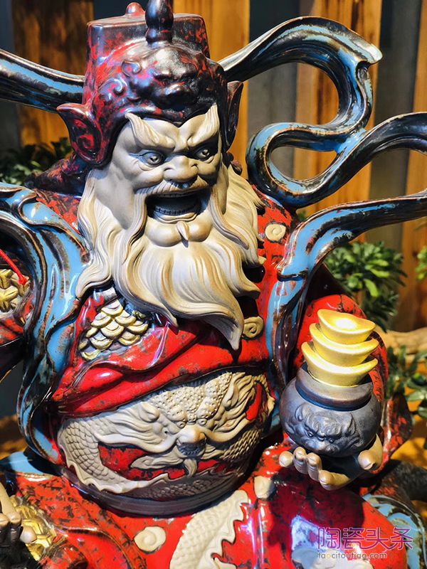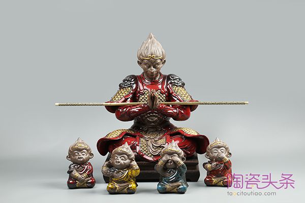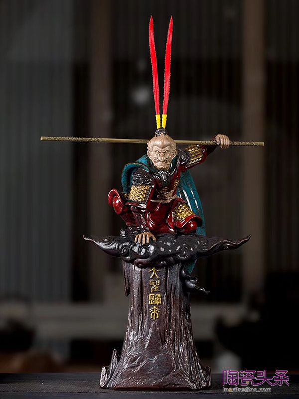“好的作品是不介意用什么材质来表达的,我们应该在已熟知的材料基础上,将它们充分发挥应用才是关键”王顺说。作品《势不可挡》中,通体的大漆装饰,是王顺在尝试“瓷+漆”这样一个新工艺的一个代表作。还有《齐天大圣》中的合金金箍棒、服饰上的颜色釉,《浩然正气》中的中国结流苏挂饰等,都让我们深深地感受到创作者的匠心巧思。