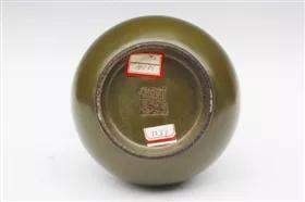 茶叶末瓷器的生产始于唐代,如在陕西耀州窑遗址中出土了茶叶末釉瓷器,釉色有黄绿、褐绿等。唐以后,有些窑厂也有茶叶末釉瓷器,但这类茶叶末釉瓷器,可能是在烧制青釉或黑釉瓷时,由于胎釉原料及烧成时产生的变化,而出现茶叶末釉色。明代御窑厂所产茶叶末釉,称“鳝鱼黄”,釉色黄润,带黑色或黑褐色斑点,像鳝鱼的皮色。《陶雅》:“鳝鱼皮以成化仿宋者为上。”清代雍正、乾隆时期,景德镇御窑厂在继承古代优良传统的基础上将其应用于白瓷胎上,精工细作,烧制出富于变化的多种色泽的茶叶末釉瓷器。据唐英的《陶成纪事》记载:“仿厂官窑,有鳝鱼黄、蛇皮绿、黄斑点三种。”黄斑点即为“茶叶末”。从传世品看,雍正时是有茶无末,乾隆时是茶末兼有。如镇江博物馆藏乾隆款茶叶末釉绶带葫芦瓶(图1),高26.2、口径2.8、底径8.2厘米。呈葫芦形,小口、细直颈,中间为束腰式箍形装饰,瓶底足外撇,圈足露胎,胎体较薄。底部刻有“大清乾隆年制”六字三行方图章篆款(图2)。两侧为对称的弯曲绶带形系耳,俊秀飘逸。全器施茶叶末釉,釉色纯正,色调沉稳,绿中闪黄,黄中闪绿,圈足釉色较深,足部釉与露胎相接处有刮削时无意留下的一圈小锯齿痕。造型优美,线条流畅,制作精细。