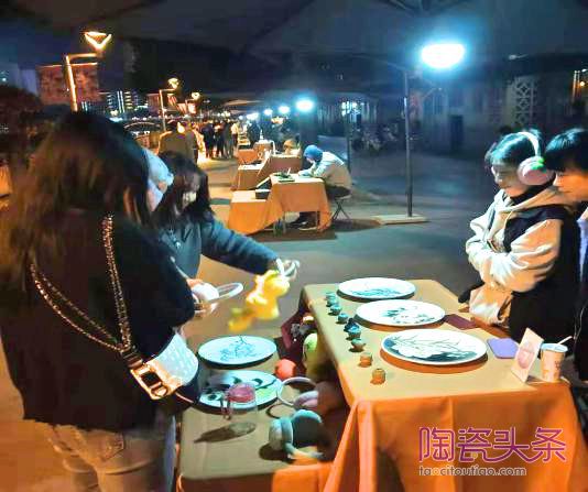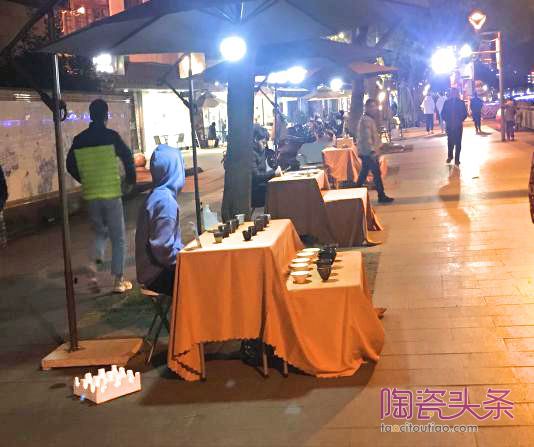 在夜幕的照耀下,市集上人来人往,热闹非凡,营造了良好的陶瓷创业环境,为学生创新创业提供了平台。同时也向德化广大市民和游客展现了陶瓷的独特魅力。