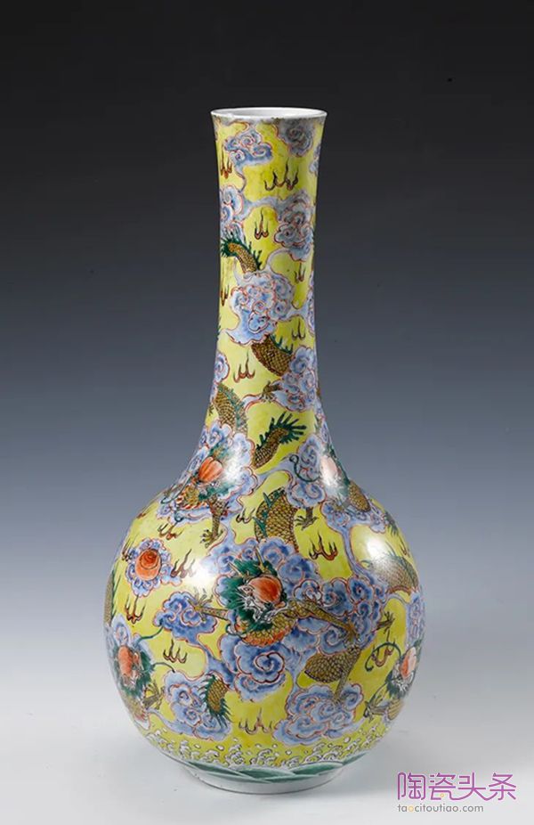 清康熙粉彩九龙天球瓶▲