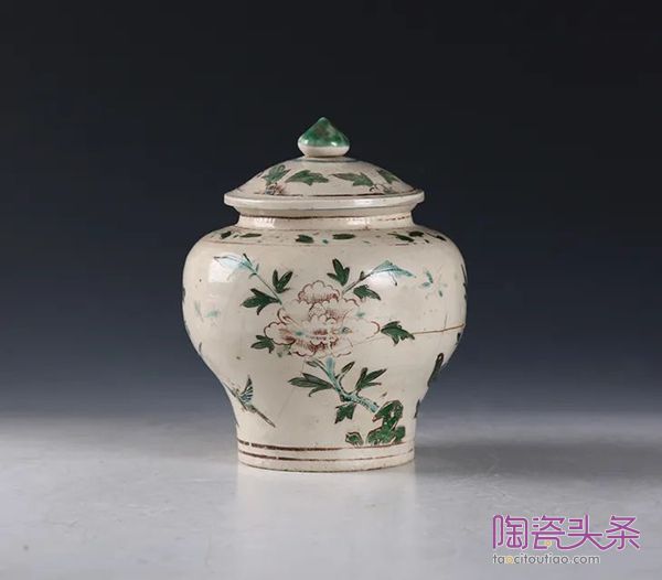 明·五彩折枝牡丹花纹盖罐▲