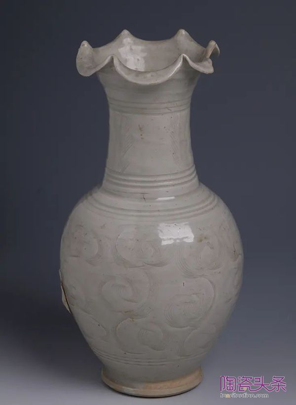 宋·青白釉划花荷口瓶▲