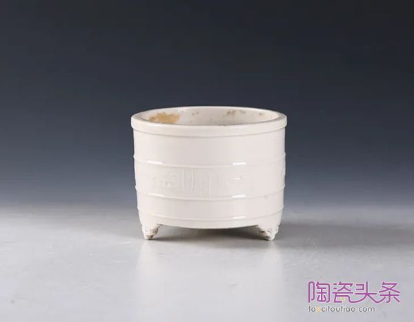 明·白釉竹节三足炉▲