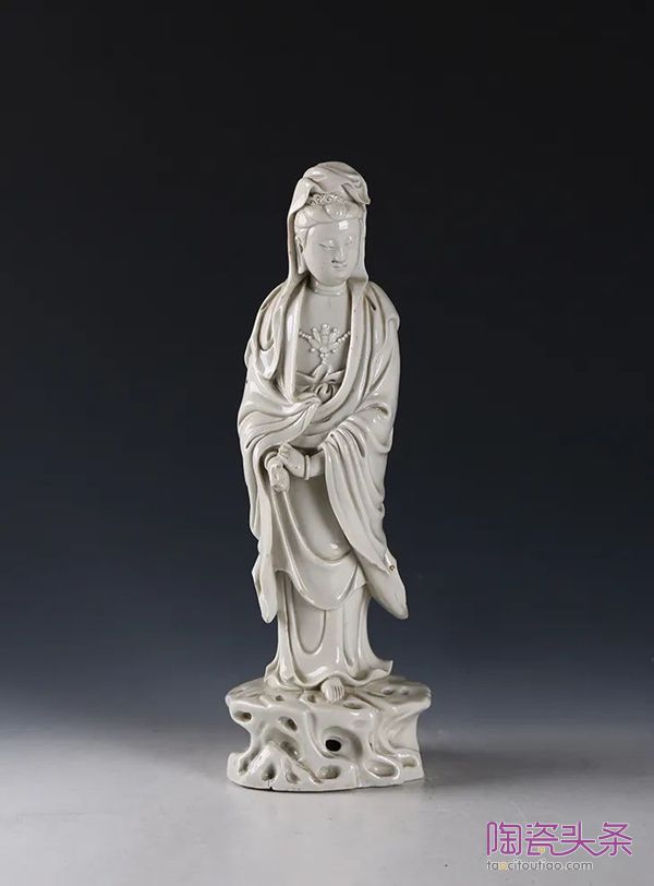 明·白釉立岩观音▲