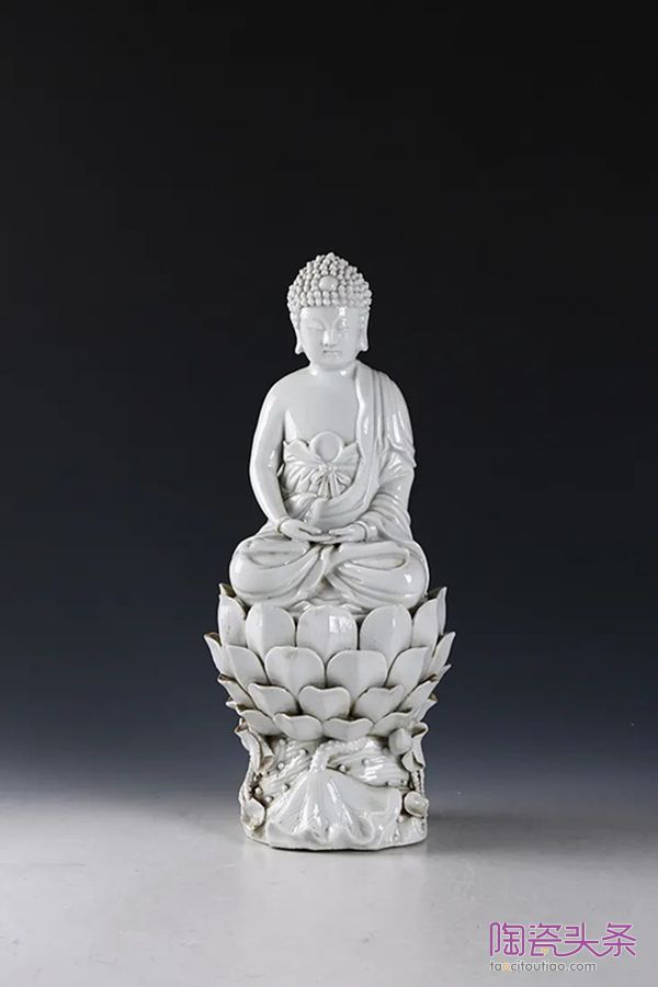清·白釉坐莲如来▲