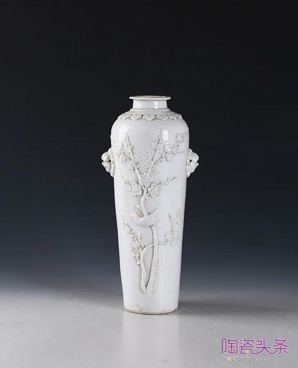 清·白釉堆贴梅花纹兽耳瓶▲