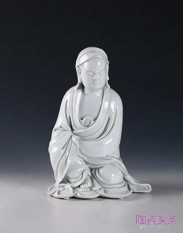 清·白釉“博及渔人”款达摩坐像▲