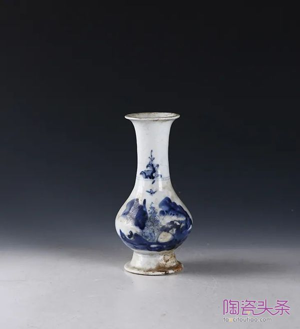 清·青花山水纹瓶▲