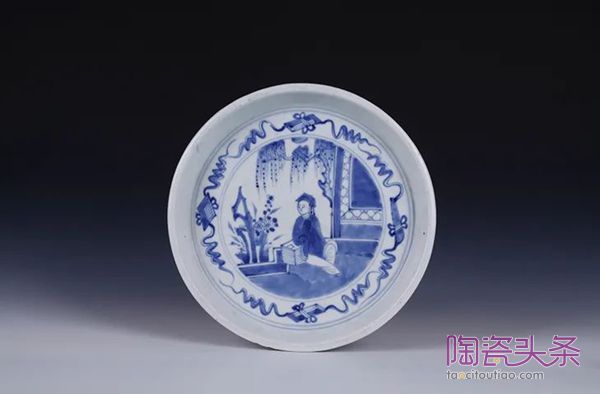 清·青花杂宝书生纹盘▲