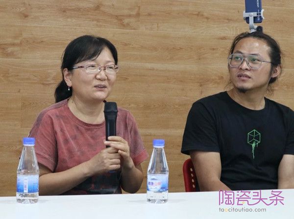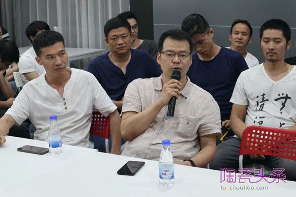 介绍环节结束,正式进入分享会的互动交流环节。互动从主持人抛出的问题:“谈谈自己多年艺术生涯的感悟和自己的创作方向?”开始,来自成都的驻留艺术家首先进行分享,他们同时也分享了他们来德化驻留十几日的创作学习心得。紧接着,与会的部分大师新秀、陶瓷营销高手、德化县陶瓷发展研究院代表也一一进行了分享,本次邀请的大师新秀德漂者居多,他们中有来德化远则十几年的也有近的4年多的,此环节对他们而言有更多的发言权。