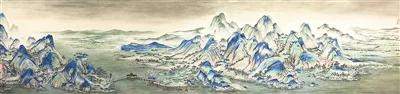 日前,笔者在南昌美术馆展出的“李润素胎仿古青绿山水瓷板画作品展”中见到了“瓷本”《千里江山图》。按照绢本原作同比例复制,高51.5厘米,原作长1191.5厘米,“瓷本”则分成了6块,每块长约200厘米。绢本原作山石先以墨色勾皴,后施青绿重彩,用石青石绿烘染山峦顶部,山峰起伏、江河浩渺,渔村野市间于其中,青山为点,湖泊为面,舟桥为线,咫尺百里,高远平远深远,显示青山叠翠。这6块“瓷本”《千里江山图》较好地将原作复原,拼在一起,气势壮观。