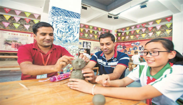 图为观众与德化瓷展讲解员现场交流。 朱嘉伟摄 新华网发
