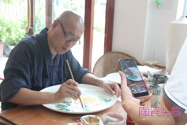 7月24日下午,在德化县戴云人家陶瓷装饰画社里,禅画大师释延年法师与福建省工艺美术大师陈行一的瓷绘交流创作悄然进行。他们以瓷为纸,釉彩为墨,在交流碰撞中勾勒出瓷上芳华。
