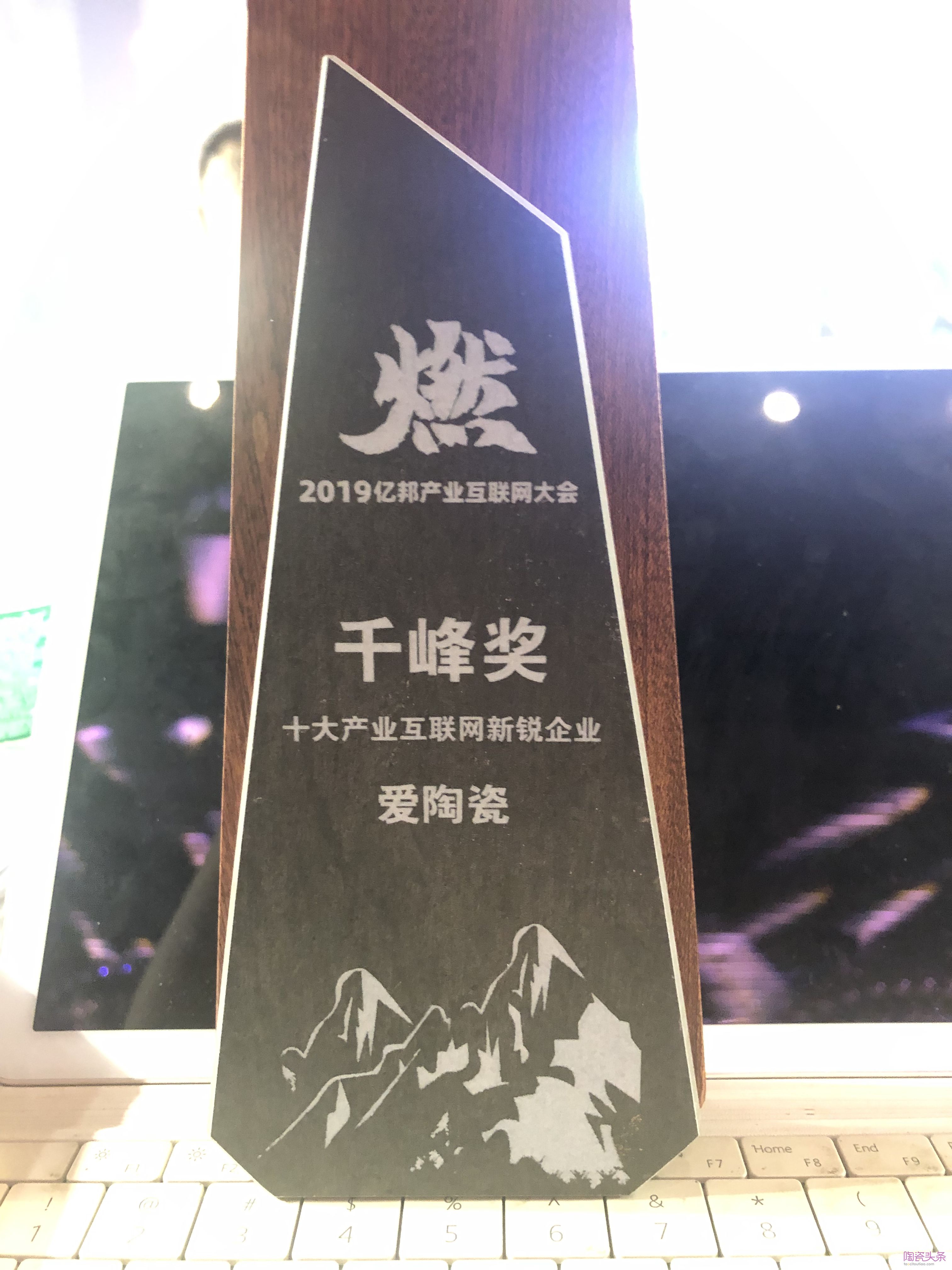 9月27日,由亿邦动力主办的“燃·2019亿邦产业互联网大会”在南京隆重举行。爱陶瓷在本次大会上荣获2019亿邦产业互联网颁发的十大产业互联网新锐企业奖、千峰奖产业百强入围奖。