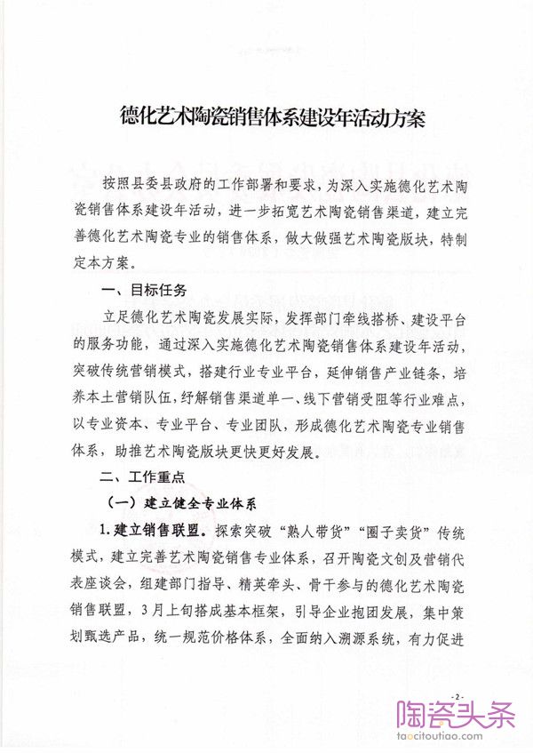 附:《德化艺术陶瓷销售体系建设年活动方案》