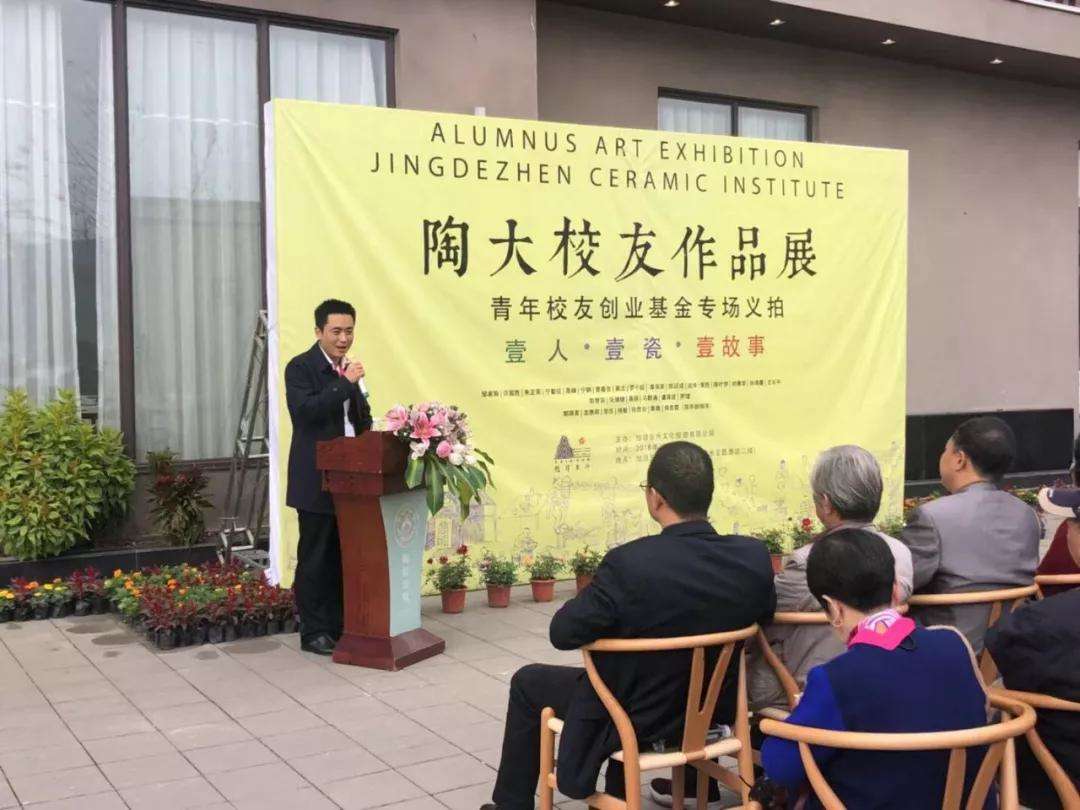“一人一瓷一故事”陶大校友作品展暨景德镇陶瓷大学本科教育60周年艺术家作品义拍于10月20日下午,在位于江西省景德镇市的瓷本艺术主题酒店举行,景德镇陶瓷大学副校长王海波、景德镇陶瓷大学校友总会秘书长冯景华、景德镇陶瓷大学校友会会长黄云鹏、景德镇陶瓷大学校友会秘书长刘先锦,以及旭日东升公司董事长谢岳荣、执行董事詹长春,景德镇校友会艺术家代表、中国陶瓷设计艺术大师许国胜等人参加了活动。