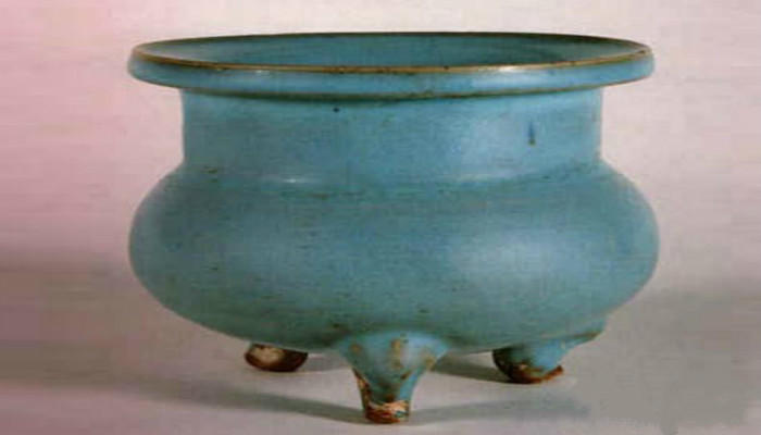 北宋钧窑天兰釉钧瓷三足炉(1963年禹县出土)