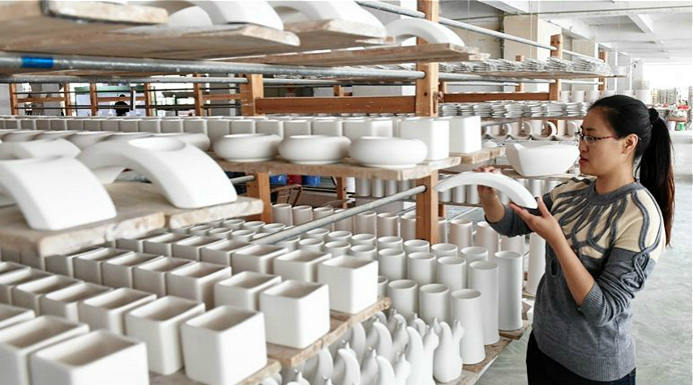 南厢自东头开始至西边已练好泥送至北厢西头拉坯师傅拉坯。这里说明一下,为什么晒架塘上的架子为南高北低呢?拉好坯后便要送至架子上晒,南高北低,往上送省力,这就是南高北低的由来。可以想象,一切设计都是服务于陶瓷生产与陶瓷文化的。