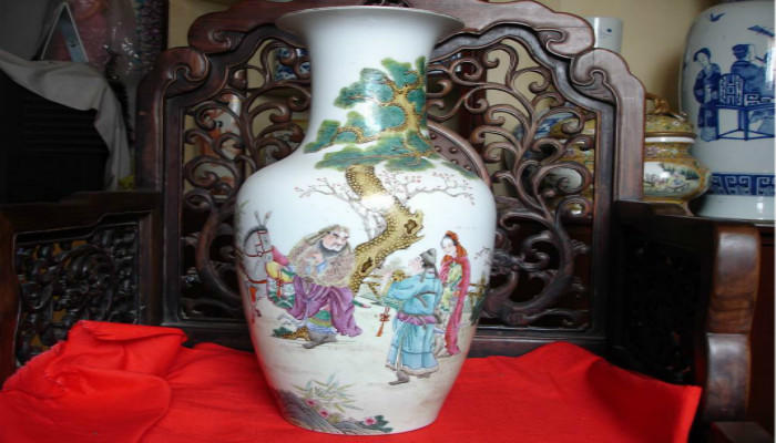 青花显高贵素雅,釉里红显浓艳活泼。因此,青花弥补了釉里红呈色层次变化的不足,而釉里红则丰富了青花瓷的色彩,因此人们把青花釉里红比喻“火中凤凰”,这正是青花釉里红的美学价值所在。青花其画面寓意深刻,民族特色极强,绘制在富于变化而又洁白的瓷胎上,再装点釉里红,犹如高雅的国画装点了色彩,更富有赏识性。青花釉里红装饰对瓷器的造型有广泛的适应性。艺术瓷的造型多为瓶类,其造型变化无穷,一般有大小、高低、宽瘦之分。同一器形,其上下的直线与曲线交替运用。其中以小口矮领丰肩下收,挺拔小底的梅瓶,饰以青花釉里红画面,更是相得益彰,耐人寻味。它的俊俏秀丽宛如俊美的少女,能超越时空界限,历经千百年一直为中外人士所喜爱。现代,箭筒以及各种夸张变化的造型,甚至残缺美的造型,饰以青花釉里红画面无不妙趣横生。