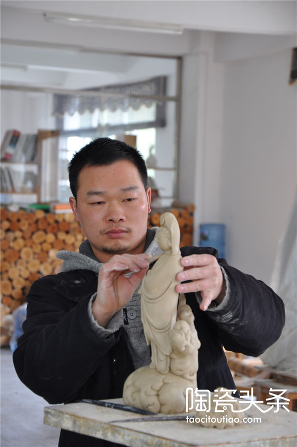 多年来,兰全盛沉潜于传统陶瓷雕塑创造,尤其痴迷于观音像的创作。“也创作过其他传统题材的作品,但是往往做一段时间就会感到疲惫。只有创作观音像,才能让我乐此不彼,忘记了时间。”由于对观音像的痴迷,也让兰全盛对作品的要求非常苛刻,一件作品需要反复修改好几次,有时甚至用了一年的时候。“每段时间的心境不同,对作品的理解也会不同,也会促使我不断完善它。”也正是这种对作品的精益求精,使得他创作的观音像更精致传神,栩栩如生。