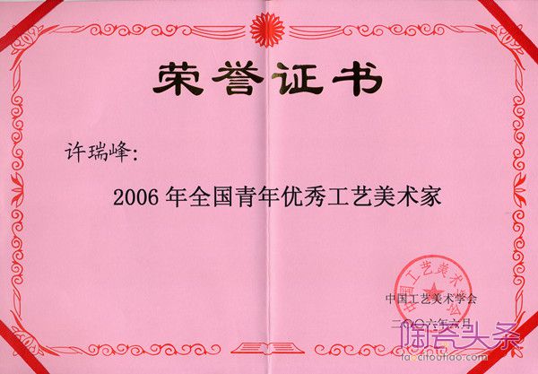 从晚唐长沙窑出现陶瓷史上的第一抹红色,到元明清釉里红、祭红、郎红,从铜红到铁红,中国历代陶瓷艺人一直没有烧制出真正意义上的大红。"辣椒红釉"的诞生,不仅圆了陶瓷艺人的"大红"梦,而且与中华民族的"红色情结"产生了强烈共鸣,出现了独特的"红瓷"文化现象。许瑞峰研制的红釉瓷,历经无数次的试验,最后他选择了其中的一款红釉,这款红釉的特点“暗藏纹裂、暗藏小气泡、红色饱和度达到99.9%、釉面光泽度与纯净度更是无可挑剔”,在山东淄博召开的中国国际陶瓷博览会上,他的“辣椒红釉”迎来了开门红。不仅得到国家领导人的肯定还赢得业界的好评,更是被全国人大常委会副委员长李铁映为此釉艺命名“中华红”。而许瑞峰本人也因此走进了中视4套《华夏文明》栏目。