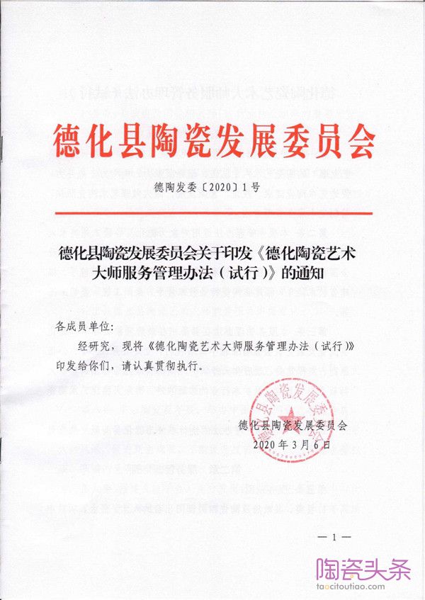 重磅丨德化县出台《德化陶瓷艺术大师服务管理办法(试行)》