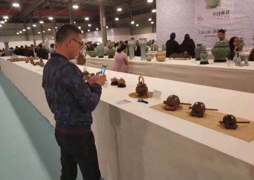 值得一提的是,采访过程中,一名参观者看中了一套方形紫砂壶,不断询问价格。他说,这个真好看,以前都没见过。