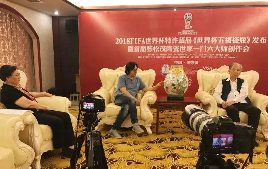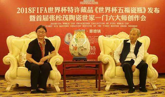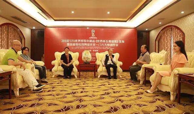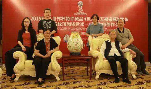 受FIFA世界杯组委会委托,由陶瓷世家中国工艺美术大师张松茂家族“一门六大师”针对世界杯题材特别创作了《世界杯五福瓷瓶》。该瓷瓶属于世界杯组委会官方授权藏品,也是2018年世界杯艺术陶瓷类的唯一藏品。