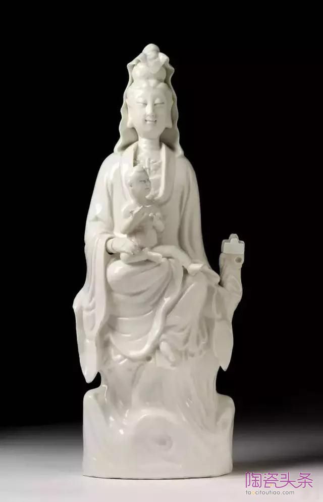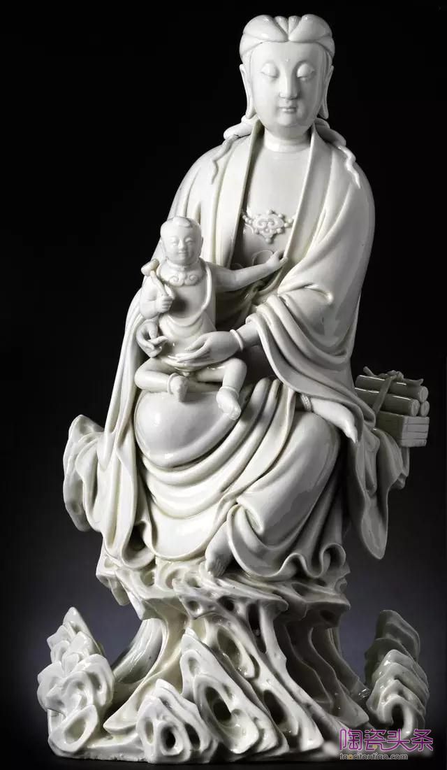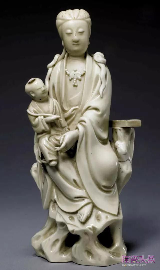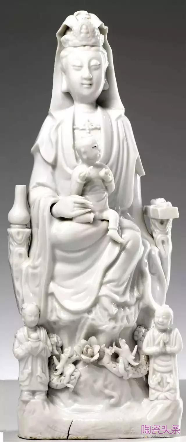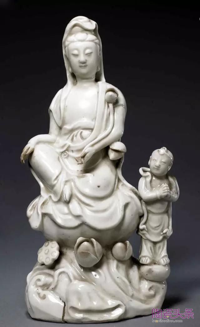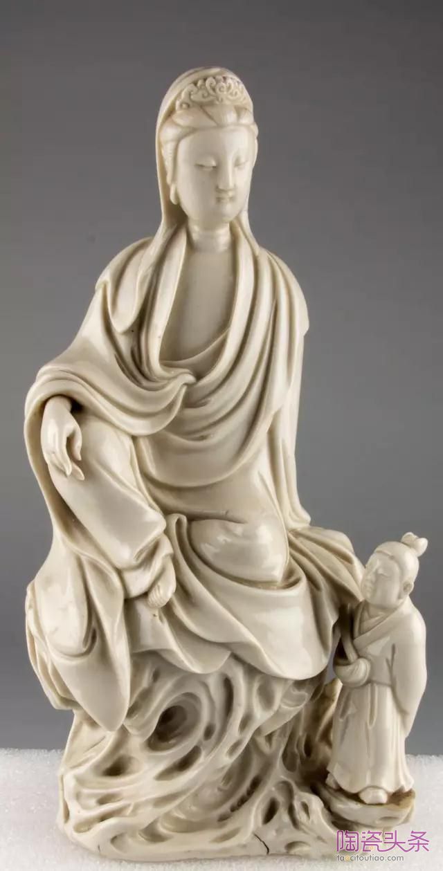 4、清代德化窑白釉瓷塑:童子拜观音像