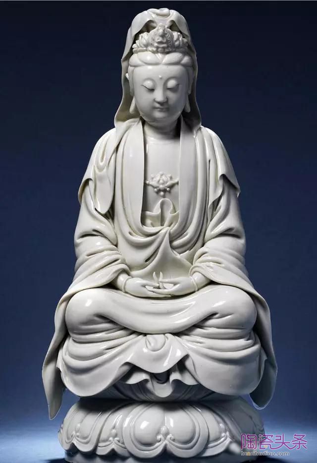 17、明代德化窑白釉“何朝宗印”款:观音菩萨坐像