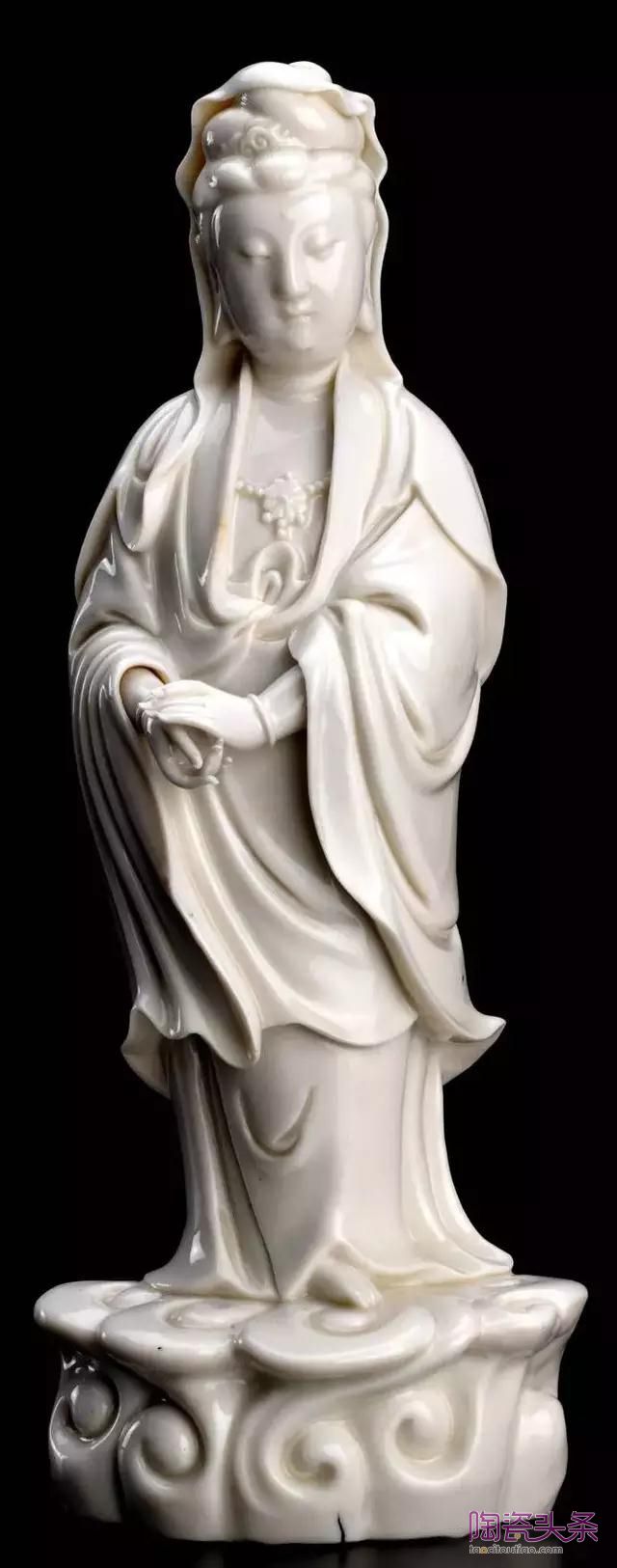 26、十六世纪明晚期德化白釉《何朝宗》印款瓷塑:观音立像