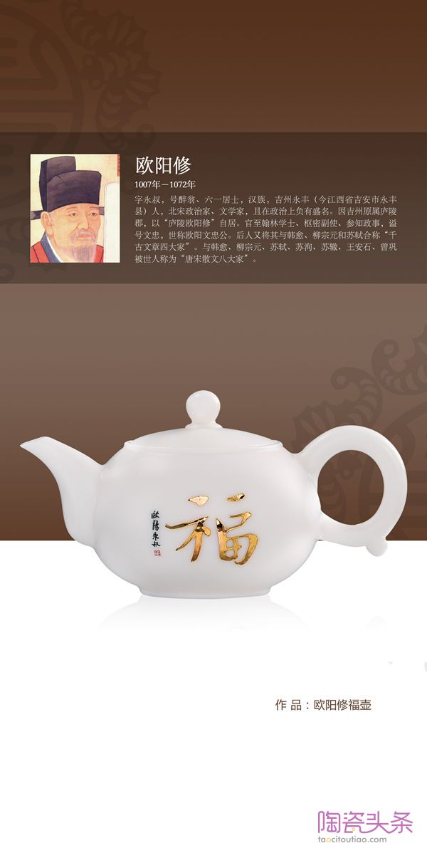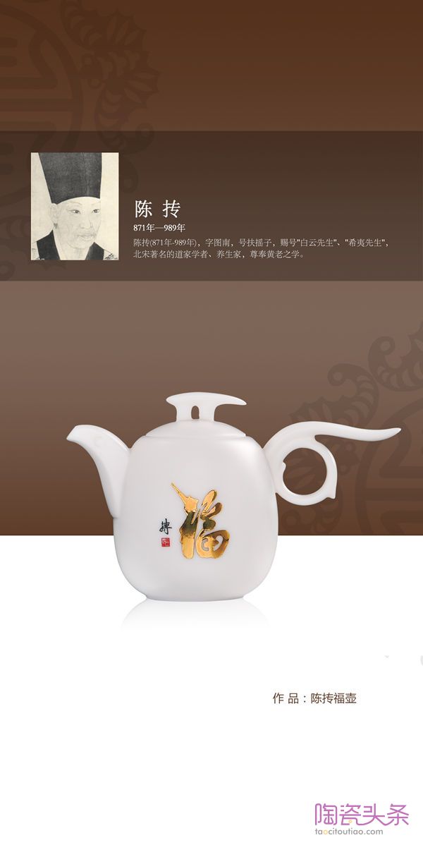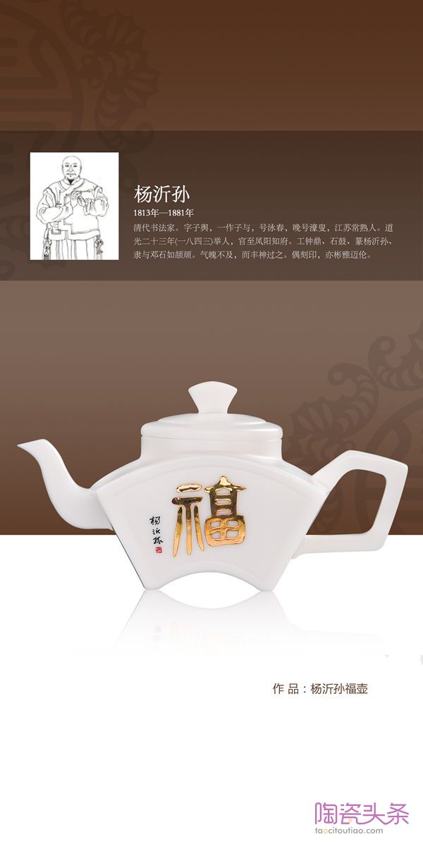 另外每一把壶的壶身都有历代名人名家书写的“福”字原稿,经过精心设计和德国贺利氏描金工艺制成。这百位历代名人包含了帝王将相、高僧大德、文学大咖、书画名家,甚至国家领导人,赏壶的同时可以赏名人书法。
