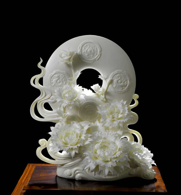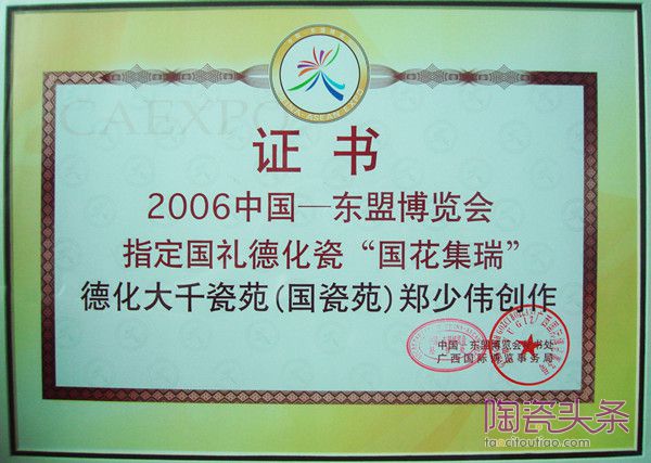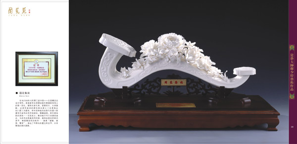值得一提的是,2006年,郑少伟创作的《国花集瑞》还被指定为中国——东盟博览会国礼,赠送给东盟十国首脑。十国国花在郑少伟的妙手下,楚楚动人,交错绽放于白瓷如意上,以此蕴意东盟十国吉祥如意,灿烂盛开。之后,他又陆续创作了《华夏至尊》、《春秋》、《日月同辉》等多件国礼作品。
