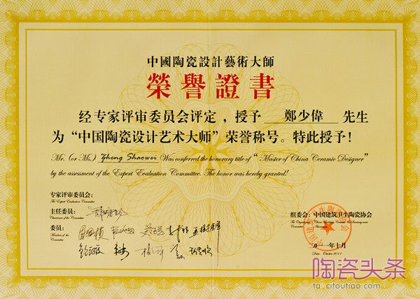 郑少伟,中国陶瓷设计艺术大师,国瓷苑艺术总监,福建省工艺美术大师,福建省高级工艺美术师,德化县八届、九届政协委员,中国收藏家最喜爱的艺术大师中华陶瓷大师联盟副主席,中国工艺美术学会高级会员,中国工艺美术协会会员,福建省民间艺术家,福建泉州民间工艺美术家协会理事,福建德化书法家协会副主席