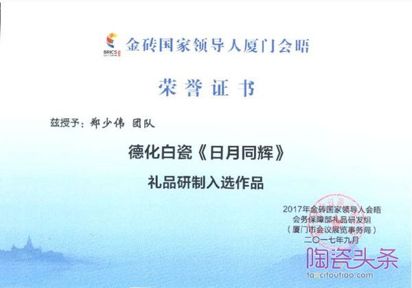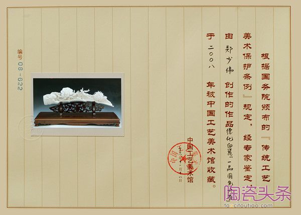 郑少伟的作品能一而再,再而三的成为国礼上选,除了自身巧夺天工的雕塑与捏塑技艺之外,更多是源于他勤奋博学,大胆创新,锐意进取,善于把中国传统文化的富贵吉祥寓意与洁净温润、细腻如玉的德化瓷相结合,赋予作品独特的艺术内涵。