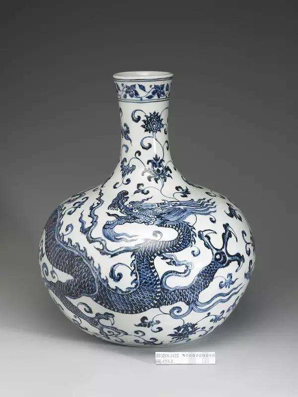 在朝廷的要求和监督下,瓷器先由内府“定夺样制”,才发给窑厂照样制作。官用作品器形规整、釉色纯正、纹饰合于规范的现象在此时开始建立。不合标准的作品往往被刻意击碎,掩藏起来,烧成的瓷器则作为国家礼仪或宫廷日常之用,或成为赏藩外交邦国的礼物。永乐、宣德年间,常有大型器如天球瓶、扁壶等作品的烧制。