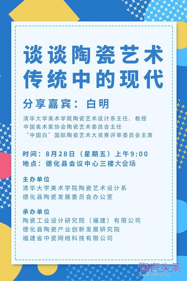 8月28日 德化县会议中心,白明教授与您分享“陶瓷艺术传统中的现代”