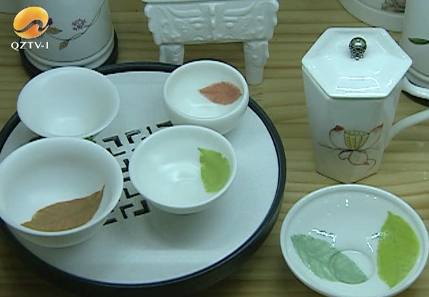 戴云艺瓷有限公司总经理 陈国钦:把树叶跟艺瓷融为一体,这个已经烧到一千三百多度永远不会变色不会烂 ,供不应求,纯手工的,烧成的难度大,经过几年的探索才烧制而成。