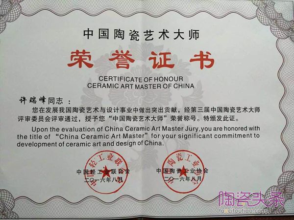 祝贺!许瑞峰大师荣获享受国务院政府特殊津贴专家