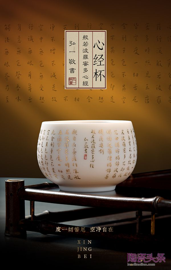 在德化金马车陶瓷博物馆,记者见到一款以弘一法师书体的文创系列单品杯。“这款产品一经推出就成为网红,今年,我们又推出一款帝王五福杯,再度受到热捧。”创作者、省陶瓷艺术大师徐建勇说。