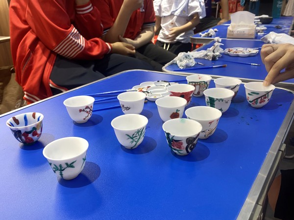 钟慧老师从颜料选择、用笔技巧、构图设计等方面,为小朋友们提供了细致的指导。在她的引导下,小朋友们充分发挥了自己的想象力和创造力,在白瓷杯上绘制出了一幅幅充满个性的瓷画作品,尽情体验了瓷彩的魅力。