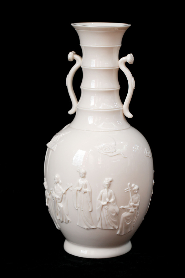 典雅明镜,如脂似玉,是许多人初见陈明良作品的印象。在不断地创新过程中,他形成了自己独特的创作风格,成功再现了“象牙白”“猪油白”“孩儿红”等明代以来才出现的釉色,业界誉其“深谙‘瓷圣’何朝宗瓷雕技法”。加之,严苛的他对作品精益求精,有时候一年创作10多件艺术品,却最终只挑选一件精品,许多海内外藏友对其作品可谓是“一件难求”。